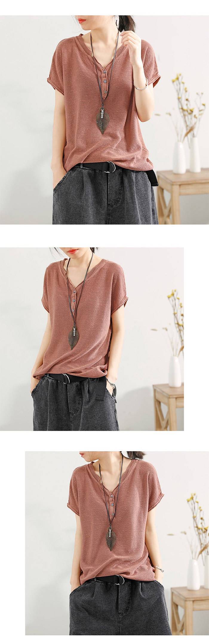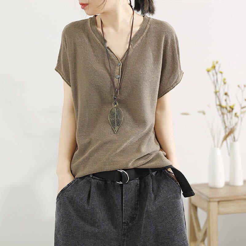 25分鐘前【夏季熱銷款】冰絲薄款V領短袖【超薄透氣】【舒適百搭】【促銷活動還在進行中哦!】 - 【活動促銷中】任選5件,均價NT$299/件
